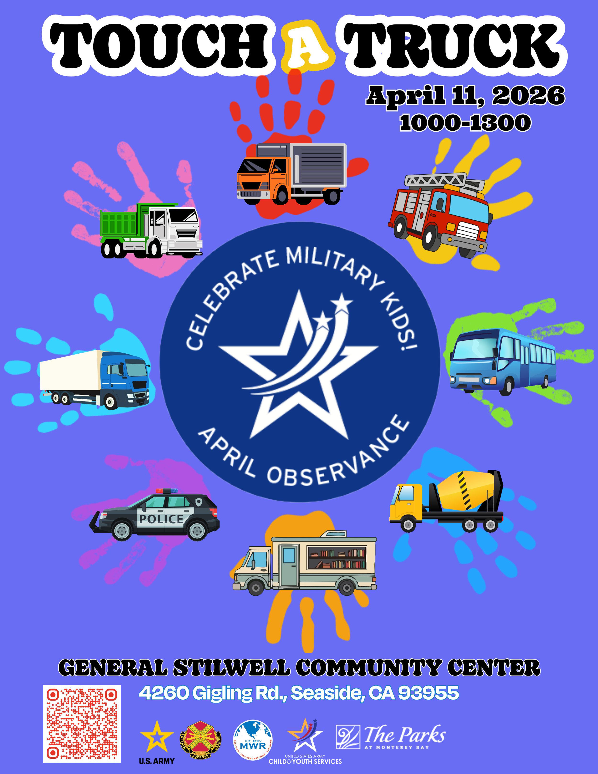 Touch a Truck Event Saturday, April 11, 2026 10:00 AM 1:00 PM 10:00 13:00 1200 Fechteler Drive Monterey, CA 93940 United States (map) Google Calendar ICS